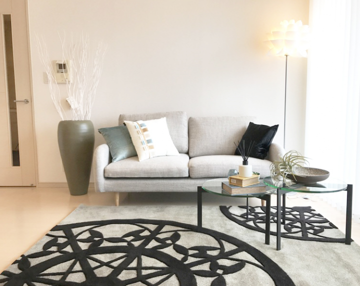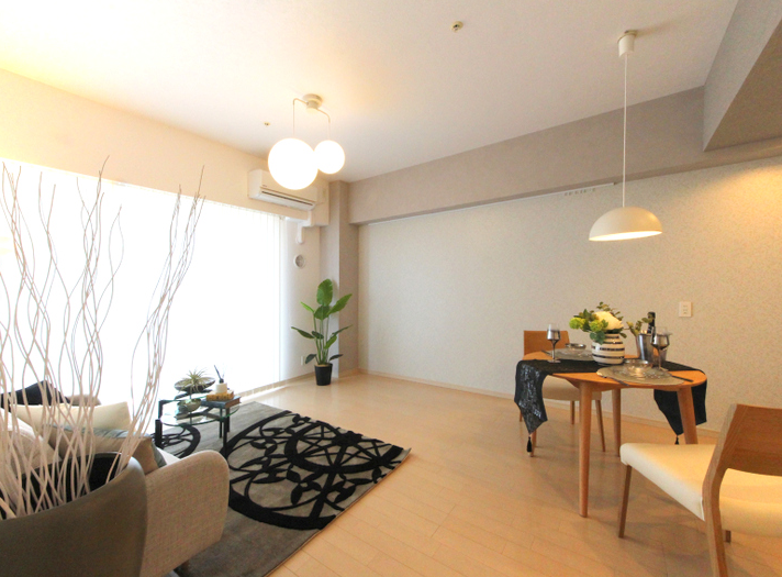 高層階の明るいリビング